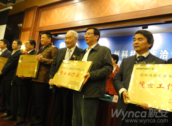 瀏覽量:4012 11月16日,在杭州舉行的2010年“中國科學(xué)院—杭州科技合作洽談會暨第七屆京滬杭(國際)高科技產(chǎn)業(yè)化交流活動”中,杭州市委常委、副市長沈堅(jiān)等市相關(guān)領(lǐng)導(dǎo)為“杭州院士專家工作站”授牌,公司總經(jīng)理季誠建和公司首位駐站的中國工程院沈寅初院士一起鄭重的接過了院士專家工作站的匾牌。
